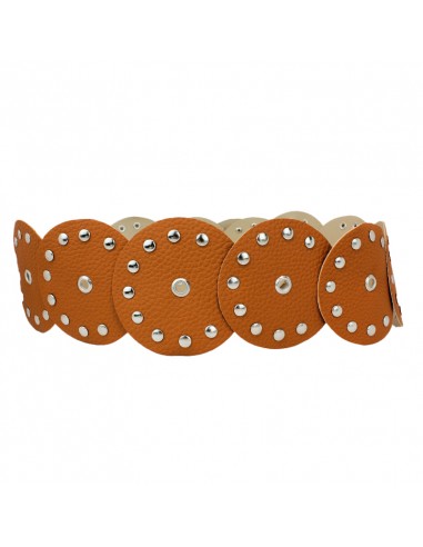 Cinturón faja circular de pu graneado con múltiples tachas.