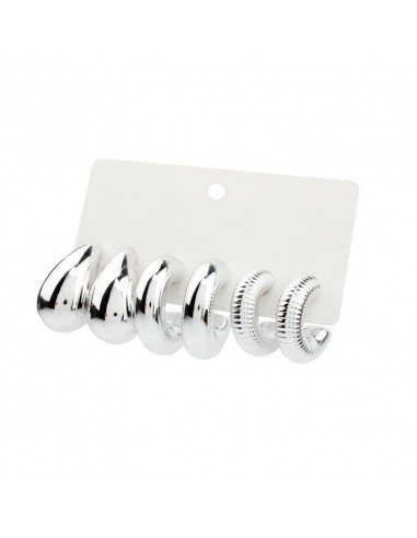Set de tres pares de aros chunky de ccb níquel.