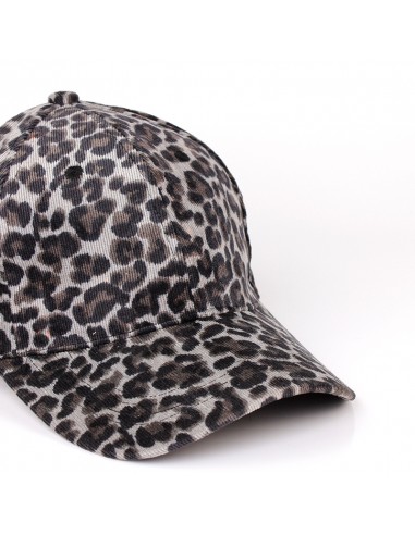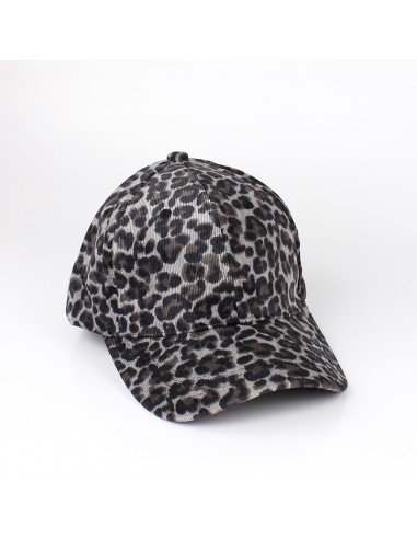 Gorra de corderoy animal print con visera rígida y hebilla de ajuste regulable.
