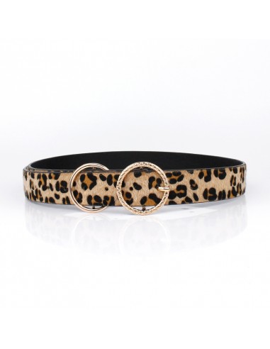Cinturón en Pu.Animal Print PU símil pelaje sintético con hebilla dorada.