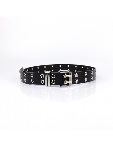 Cinturón de PU con hebilla níquel y múltiples ojales en forma de estrellas.
