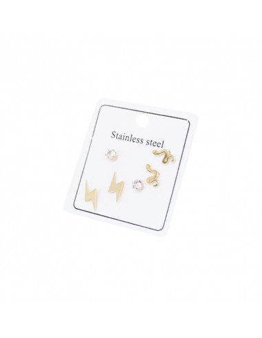 Set de tres pares de aros de acero con aro pasante de strass.