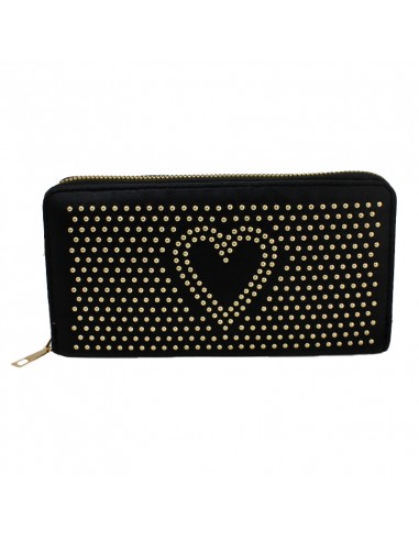 Billetera de PU importada excelente calidad, con compartimientos y cierre internos, con apliques de tachas doradas.