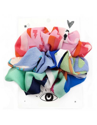 Pack de 3 scranchies surtidos presentados en cartón exhibidor