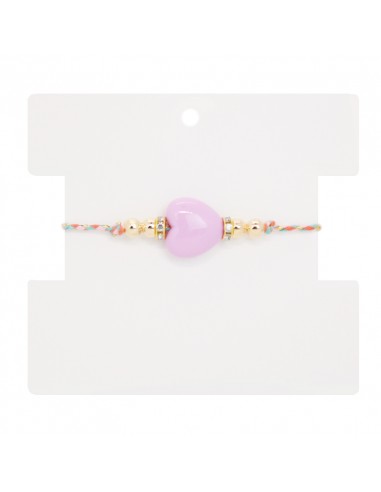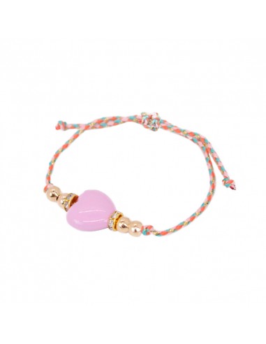 Pulsera de hilo con cierre en macramé con detalles dorado, roscas de strass y corazón exclusivo de cerámica.
