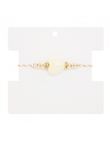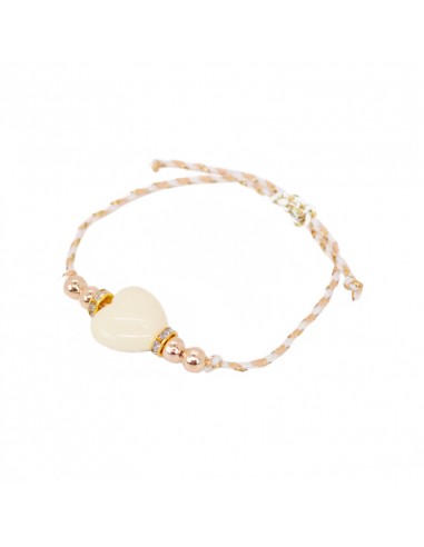 Pulsera de hilo con cierre en macramé con detalles dorado, roscas de strass y corazón exclusivo de cerámica.