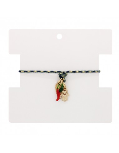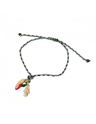 Pulsera de hilo con cierre en macramé, ají de cerámica y dijes exclusivos dorados