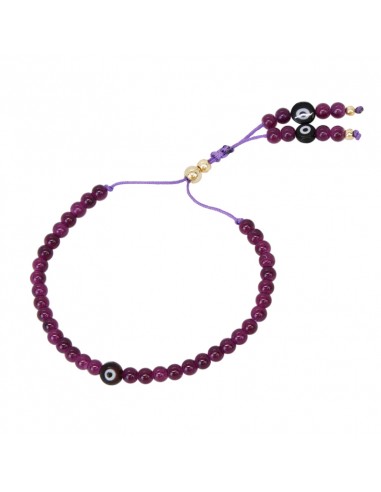Pulsera de hilo con cierre en macramé, bolitas y ojos exclusivos de vidrio.
