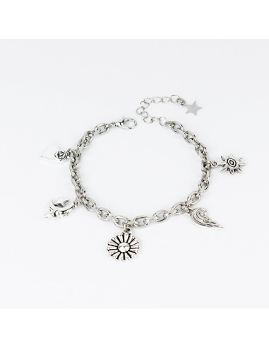 Pulsera de cadena diferenciada con múltiples dijes exclusivos níquel.