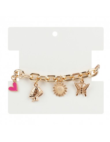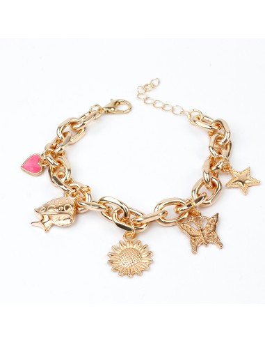 Pulsera de cadena diferenciada con múltiples dijes exclusivos dorados.