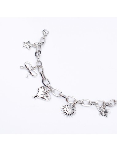 Pulsera de cadena diferenciada con múltiples dijes exclusivos níquel.