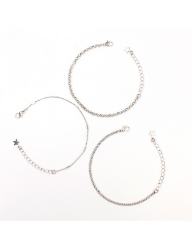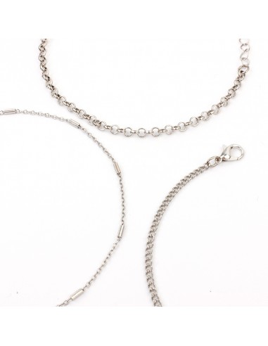 Set de tres pulseras de cadena diferenciada con dijes exclusivos níquel.