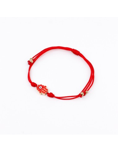 Pulsera de hilo con cierre en macramé y dije exclusivo pintado a mano dorado.