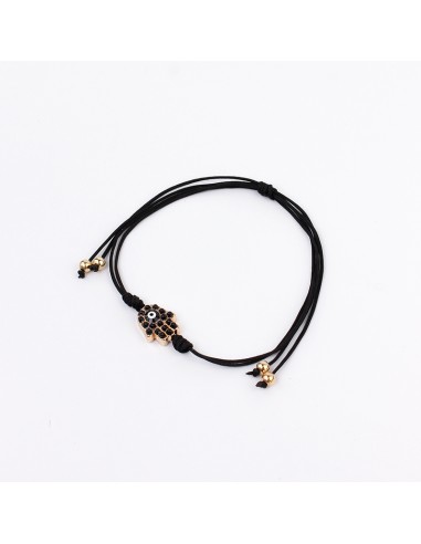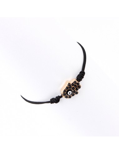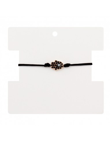 Pulsera de hilo con cierre en macramé y dije exclusivo pintado a mano dorado.
