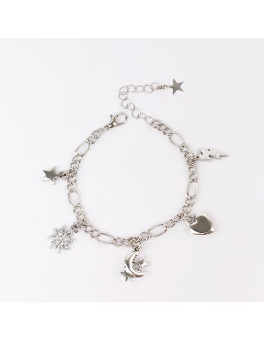 Pulsera de cadena diferenciada con múltiples charms exclusivos de distintas formas y tamaños níquel.