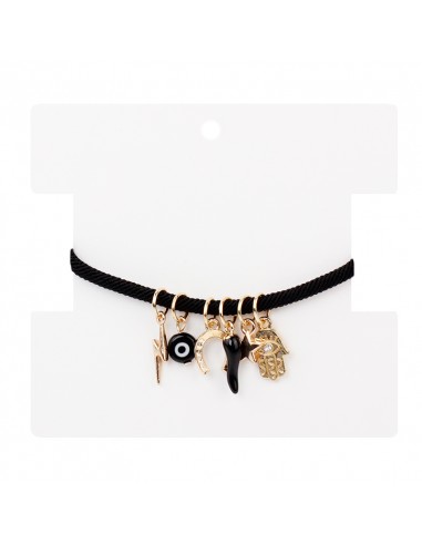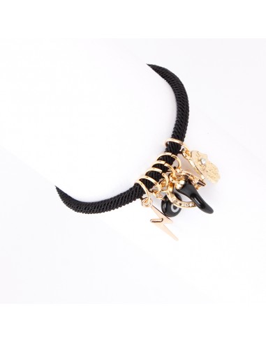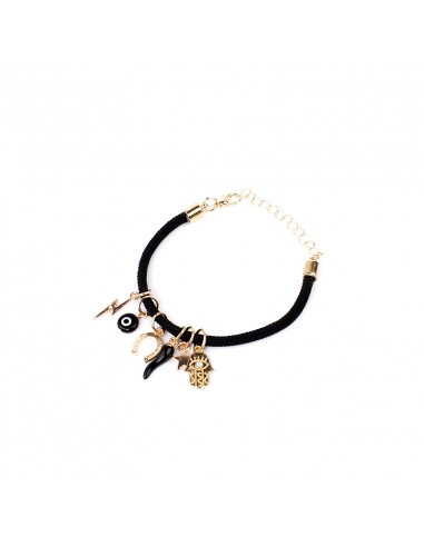 Pulsera de cordón diferenciado con múltiples dijes exclusivos de distintas formas y tamaños.