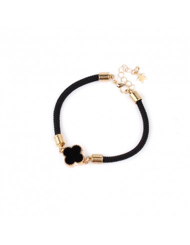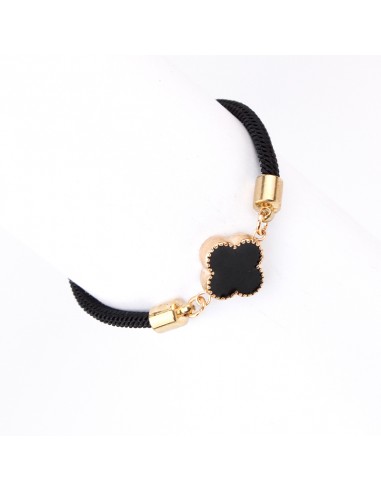 Pulsera trendy de cordón diferenciado con dije pasante con forma de trébol pintado a mano.