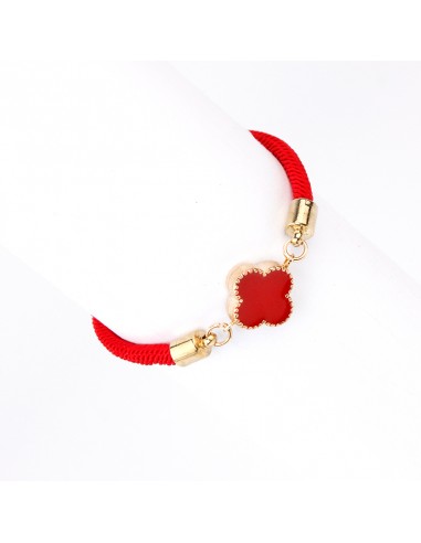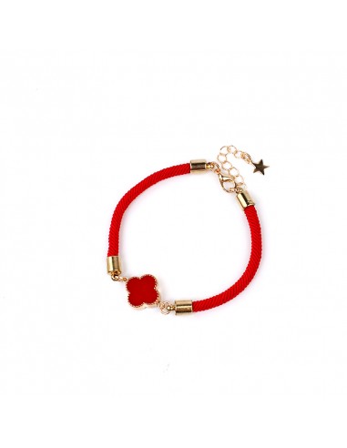 Pulsera trendy de cordón diferenciado con dije pasante con forma de trébol pintado a mano.