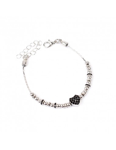 Pulsera trendy de cadena diferenciada y piezas pasantes de ccb y de strass, con dije exclusivo de strass con forma de corazón.