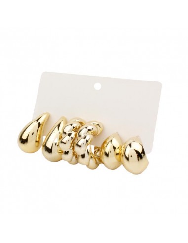 Set de tres pares de aros chunky dorados.