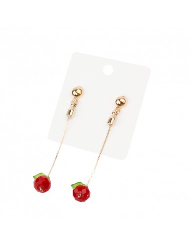 Aro trendy con lluvia de cadena diferenciada y piezas de roca de cristal formando una cereza.