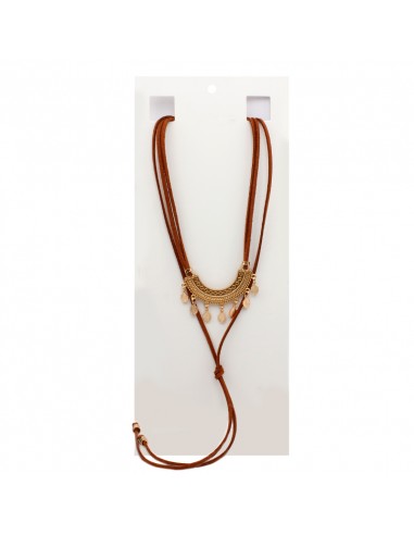 Collar corbatero de gamuza con dijes exclusivos dorados.