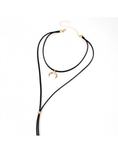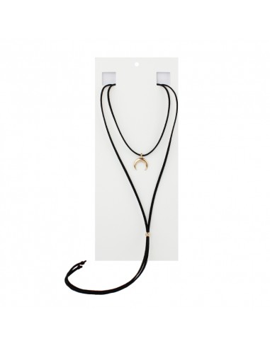 Collar corbatero de doble caída de gamuza con dije exclusivo dorado.