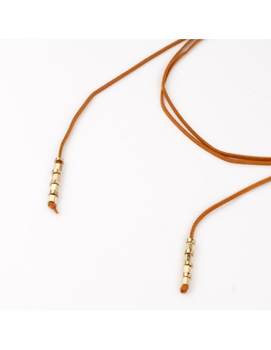 Collar corbatero de múltiples vueltas de gamuza con terminal de dijes exclusivos de ccb dorados.