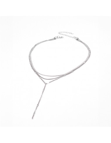 Collar corbatero de triple caída de cadena diferenciada níquel.