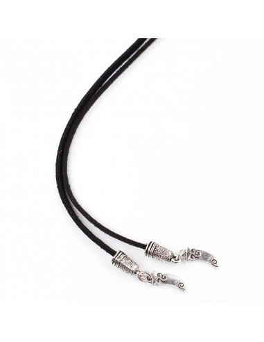Collar corbatero de gamuza múltiples vueltas con dije exclusivo con forma de alas níquel y terminaciones en punteras.