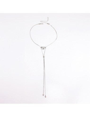 Collar corbatero de cadena diferenciada con dije exclusivo doble agarre con forma de corazón níquel y terminaciones en punteras.