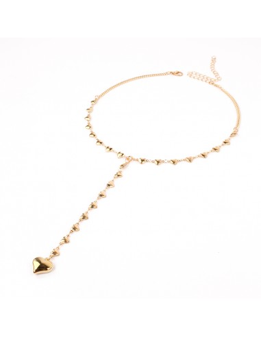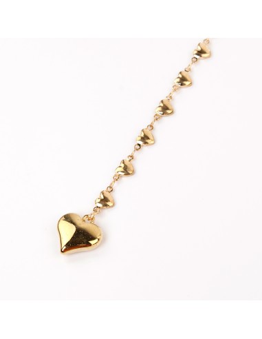 Collar corbatero de cadena diferenciada intervenida con eslabones de corazón dorada.