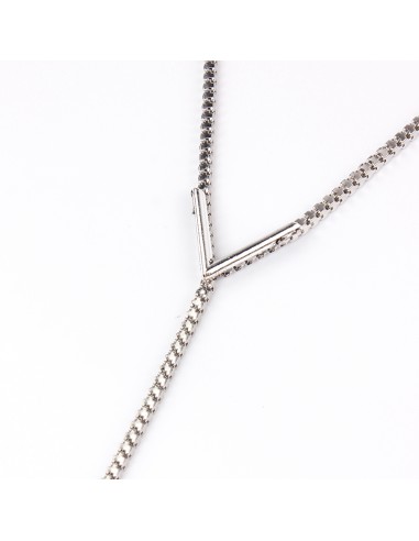 Collar corbatero reversible de cadena diferenciada. Medidas: 45 más 20 cm de caída. Y largo ajustable con cadena de enganche de 10 cm.