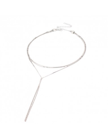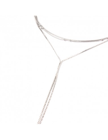 Collar corbatero de triple caída de cadenas diferenciadas. Medidas: 35 , 36, 39 + 10 cm de caída. Y largo ajustable con cadena de enganche de 10 cm.