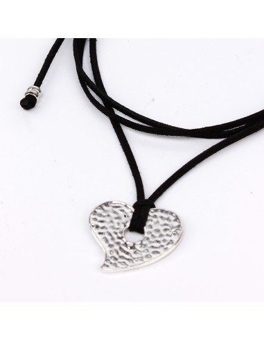Collar corbatero de gamuza de múltiples vueltas con dije exclusivo en forma de corazón níquel.