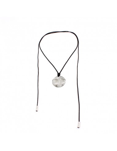 Collar corbatero de gamuza de múltiples vueltas con dije exclusivo geométrico con forma circular.