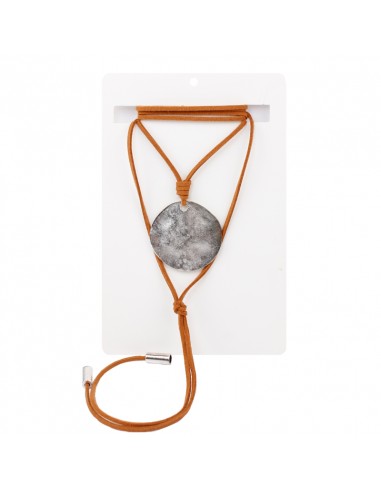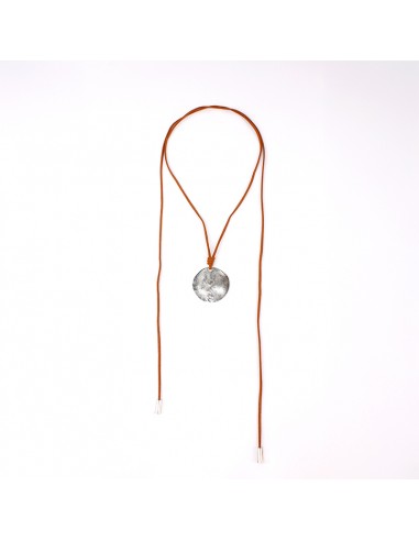 Collar corbatero de gamuza de múltiples vueltas con dije exclusivo geométrico con forma circular.