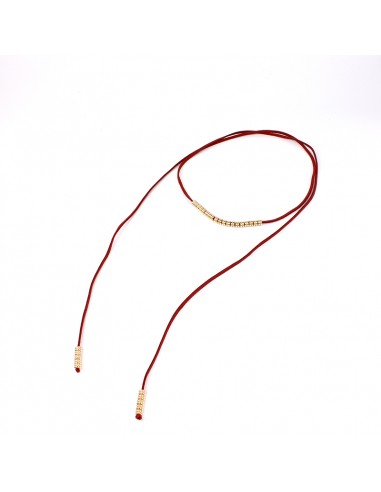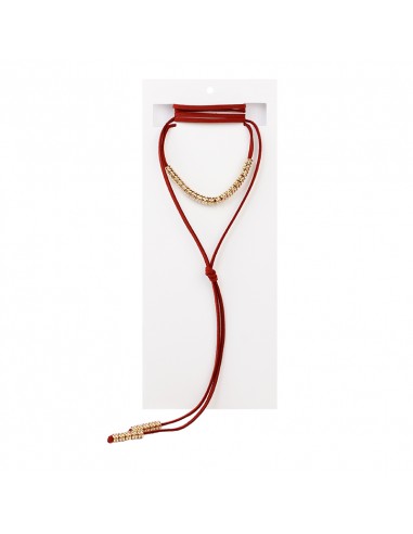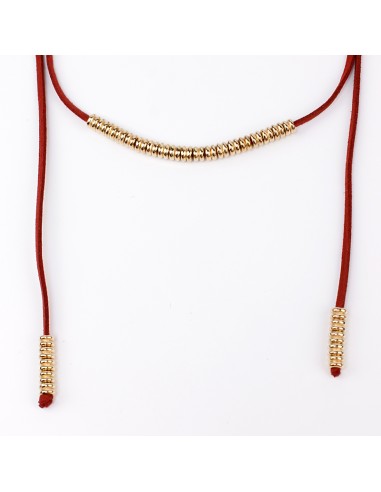 Collar corbatero de gamuza múltiples vueltas con piezas pasantes doradas y terminaciones en punteras.