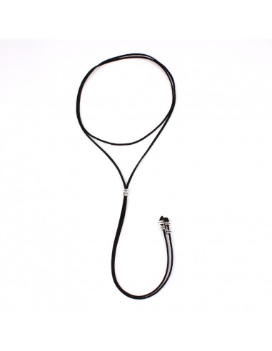 Collar corbatero de gamuza múltiples vueltas con dijes pasantes exclusivos níquel y terminaciones en punteras.