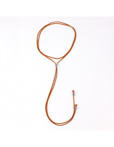 Collar corbatero de gamuza múltiples vueltas con dijes pasantes exclusivos níquel y terminaciones en punteras.