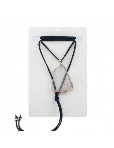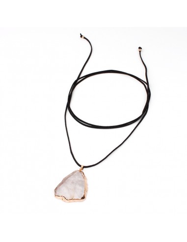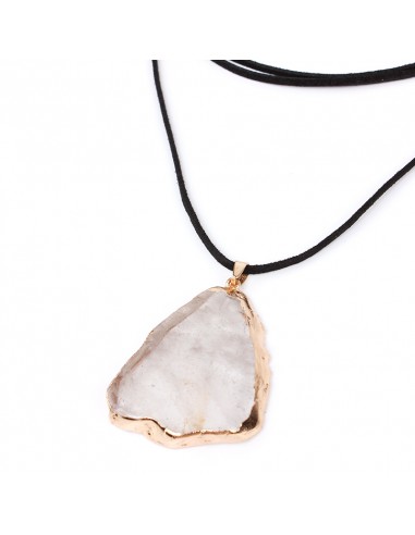 Collar corbatero de gamuza múltiples vueltas con dije exclusivo de piedra natural y terminaciones en punteras
