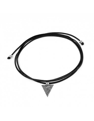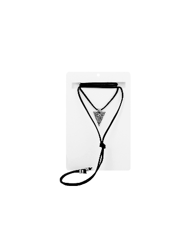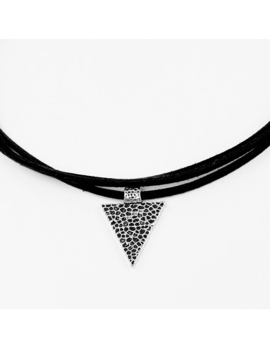 Collar corbatero de gamuza múltiples vueltas con dije exclusivo con forma de triángulo níquel y terminaciones en punteras.
