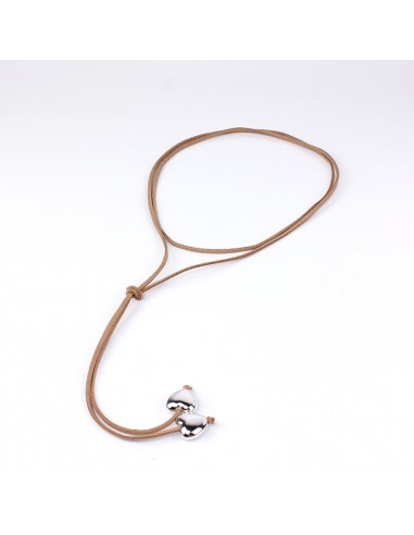 Collar corbatero de gamuza de múltiples vueltas con terminaciones en punteras de ccb níquel con forma de corazones.