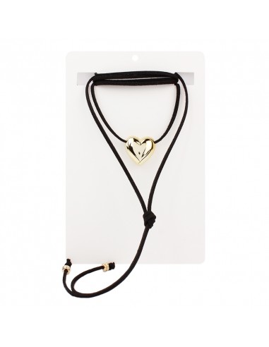 Collar corbatero de gamuza múltiples vueltas con dije exclusivo de ccb dorado en forma de corazón y terminaciones en punteras.