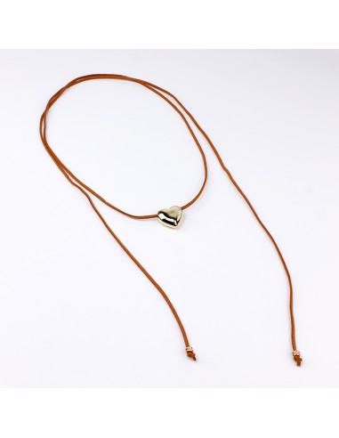 Collar corbatero de gamuza múltiples vueltas con dije exclusivo de ccb dorado en forma de corazón y terminaciones en punteras.