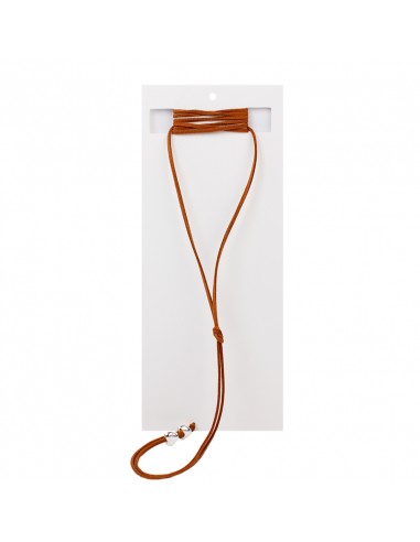 Collar corbatero de gamuza múltiples vueltas con dije exclusivo de ccb níquel y terminaciones en punteras.