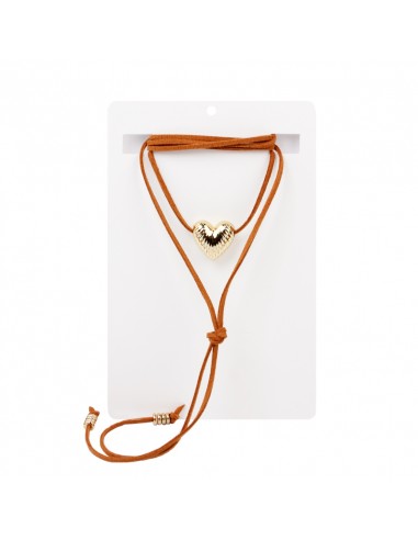 Collar corbatero de gamuza múltiples vueltas con dije exclusivo con forma corazón dorado de ccb y terminaciones en punteras.