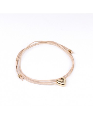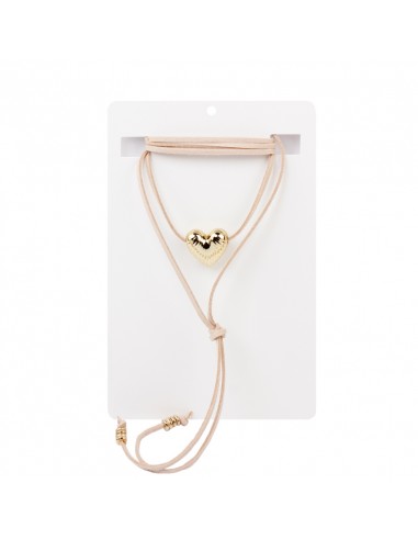 Collar corbatero de gamuza múltiples vueltas con dije exclusivo con forma corazón dorado de ccb y terminaciones en punteras.