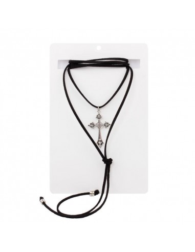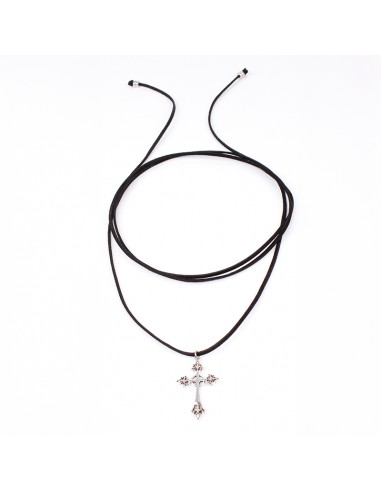 Collar corbatero de gamuza de múltiples vueltas con dije exclusivo con forma de cruz níquel y terminaciones en punteras.