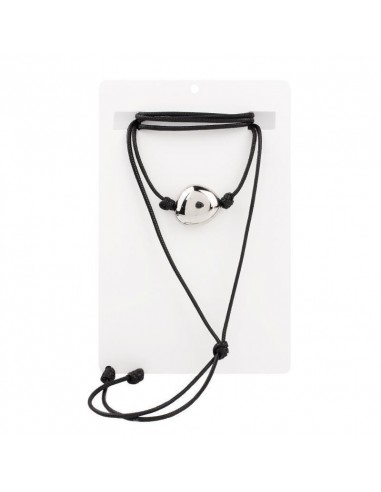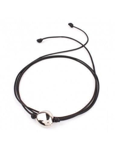 Collar corbatero de cordón exclusivo de múltiples vueltas con dije pasante de ccb níquel y terminaciones en punteras.